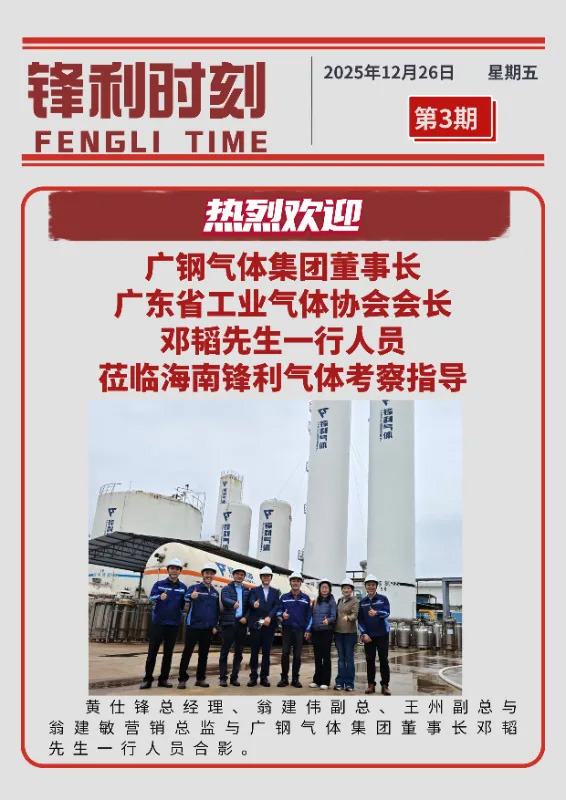 2025年12月26日上午,廣州廣鋼氣體能源股份有限公司(以下簡稱“廣鋼氣體”)董事長、廣東省工業(yè)氣體協(xié)會會長鄧韜先生率團(tuán)隊(duì)蒞臨海南鋒利氣體考察指導(dǎo)。我司總經(jīng)理黃仕鋒、副總經(jīng)理翁建偉、王州及營銷總監(jiān)翁建敏等高管全程陪同,雙方圍繞氣體行業(yè)的發(fā)展趨勢與協(xié)同路徑展開了深入交流。